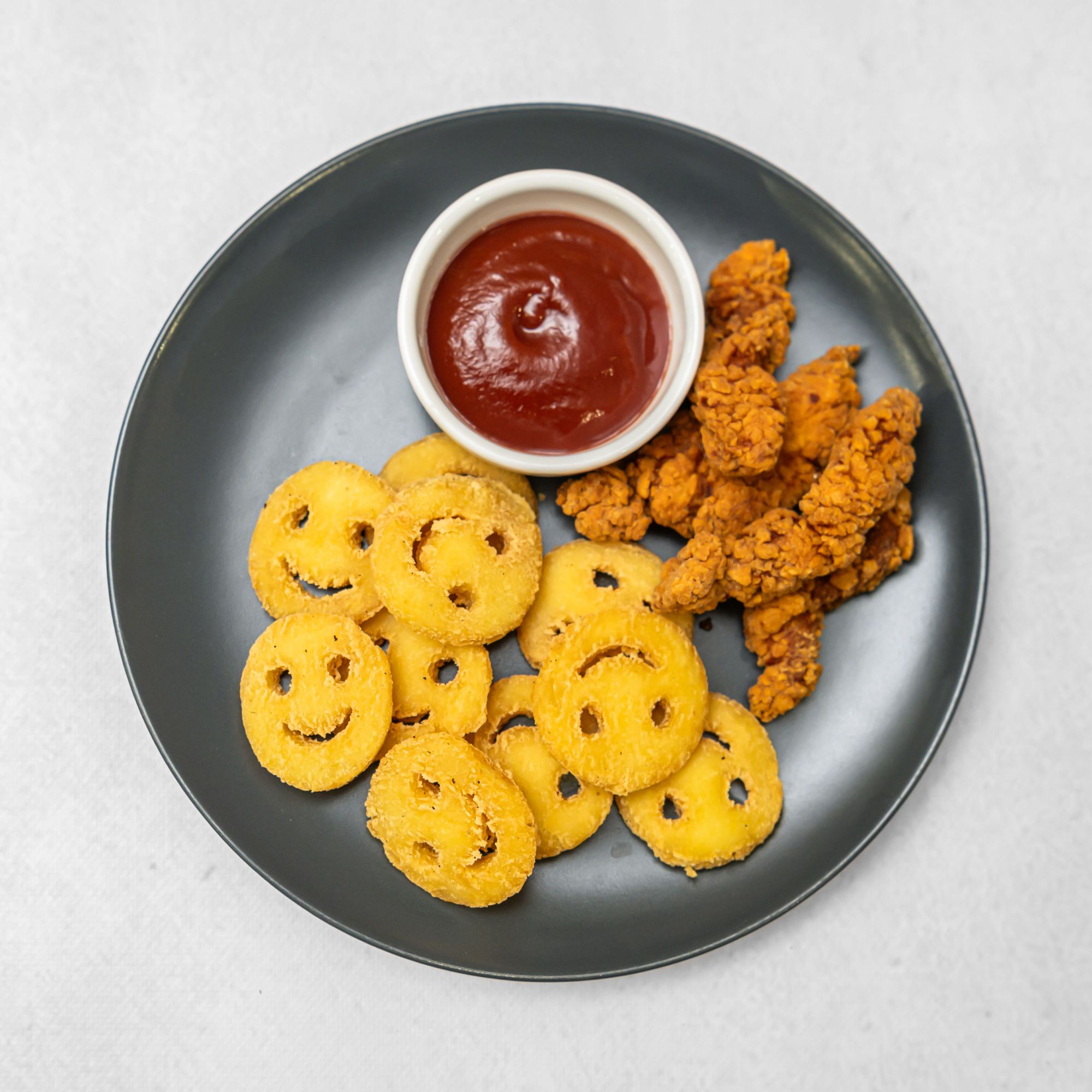 kurczak teryiaki 200g, frytki 250g, sos tzatzyki, salsa. (waga przed obróbką) Opłata za opakowanie z tworzywa sztucznego